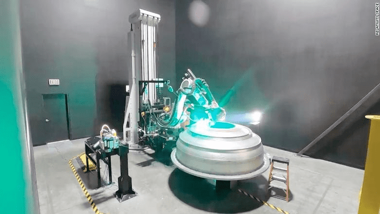Relativity計(jì)劃3D打印200英尺高的軌道火箭(稱為人族1號)的幾乎每個(gè)組件。其他火箭工廠使用3D打印機(jī)快速起草某些組件,但大多數(shù)組件是通過復(fù)雜的供應(yīng)鏈從供應(yīng)商那里引進(jìn)的。在Flatvity,火箭部件幾乎完全由單臂機(jī)器人制造,將金屬噴射成設(shè)計(jì)復(fù)雜的部件,可以替代數(shù)百個(gè)微小部件。大約90% 的火箭是3D打印的。正因?yàn)槿绱耍琑elativity 說它可以使用不到 1000 個(gè)零件,而傳統(tǒng)火箭使用超過100000個(gè)零件。