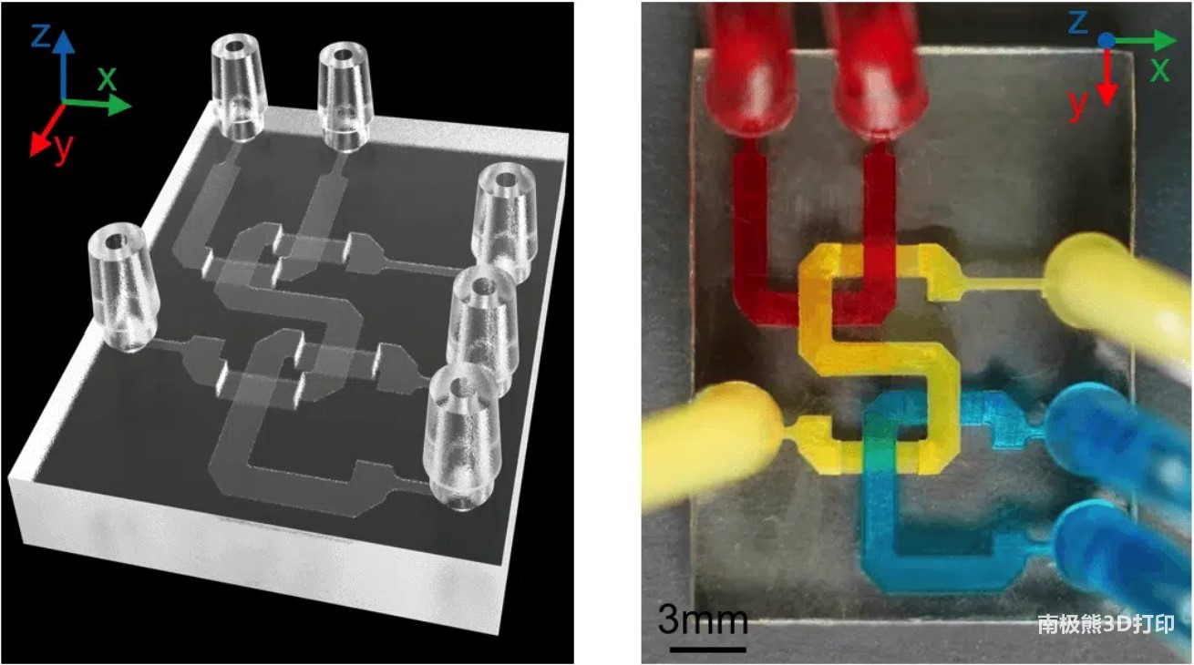 微流控芯片的生產涉及到諸多繁瑣復雜的步驟,微小的通道和孔往往需要手工蝕刻或模壓到透明的樹脂芯片中進行測試。雖然3D打印為生物醫學設備的制造提供了許多優勢,但直到現在大多數技術都不夠靈敏,無法構建微流控設備所需的精細層結構。