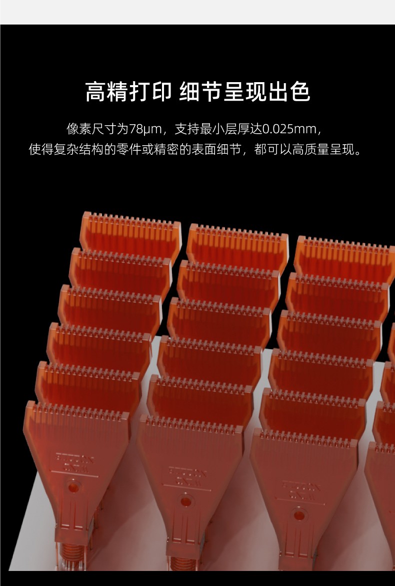 Shape 4K像素尺寸為78um,支持最小層厚達0.025mm,使得復雜結構的零件或精密的表面細節,都可以高質量呈現。
