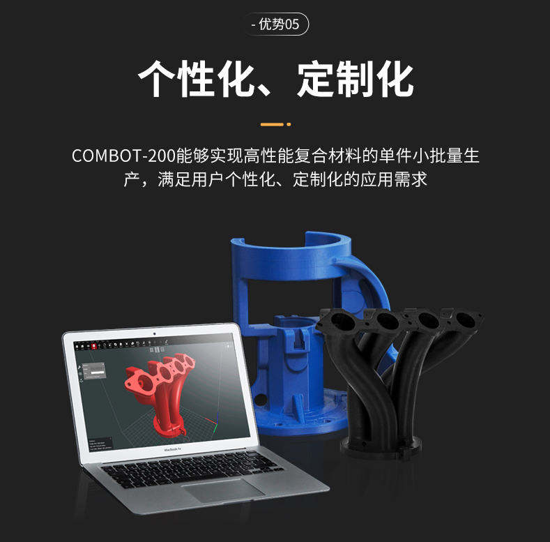 Combot 200碳纖維3D打印機,具有雙材料打印系統(tǒng),兼顧高強度與輕量化,構(gòu)建能力強,支持個性化定制,利用連續(xù)碳纖維與PLA材料等高性能材料性能構(gòu)建出高強度復合材料零件,連續(xù)打印混合材料。