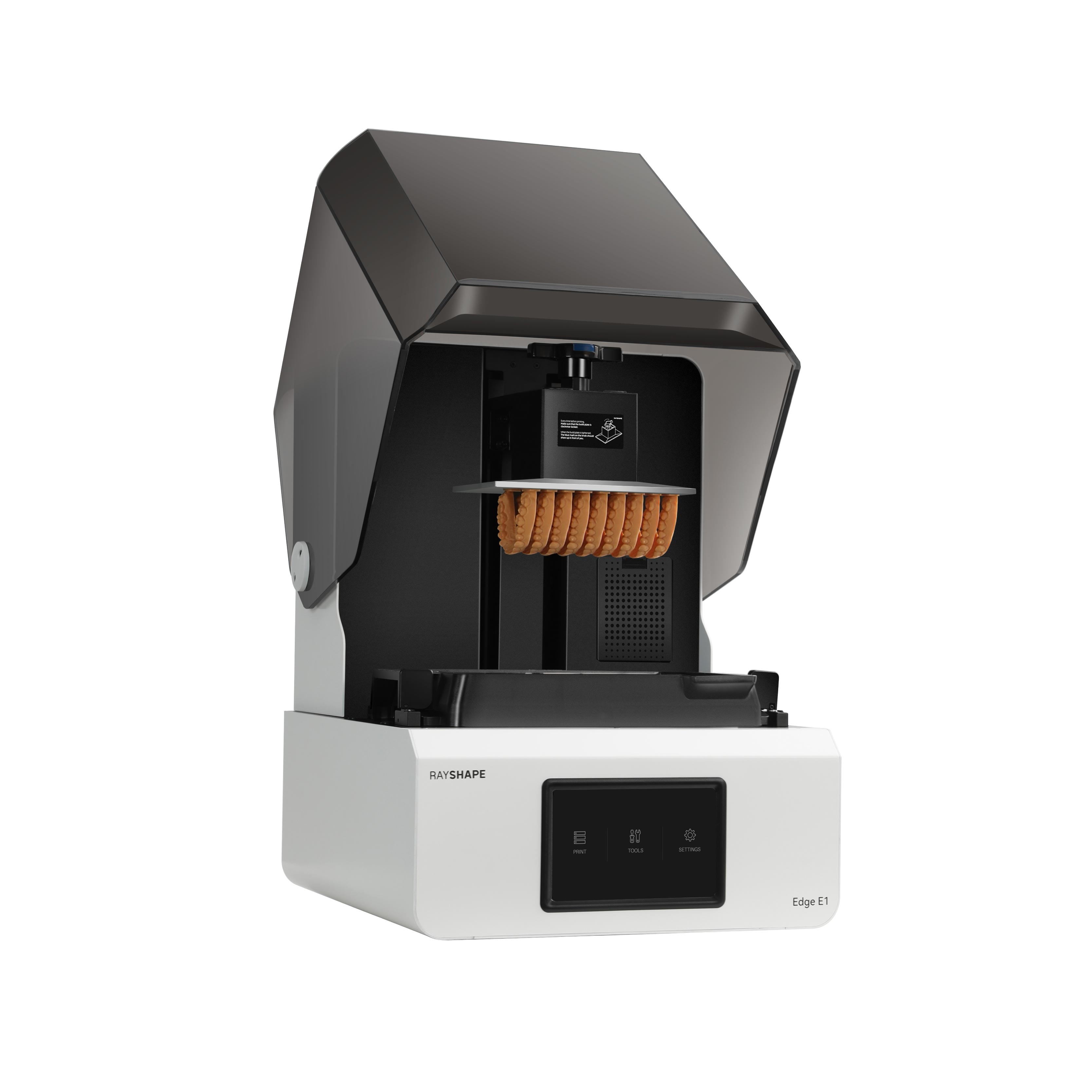 Rayshape高性價比的專業齒科3D打印機開啟數字化齒科的理想之選,Edge E1系列視覺層次豐富,質感細膩,操作細節對用戶友好取拿成型平臺與樹脂槽等高頻操作,均可以在較短路徑完成操作。