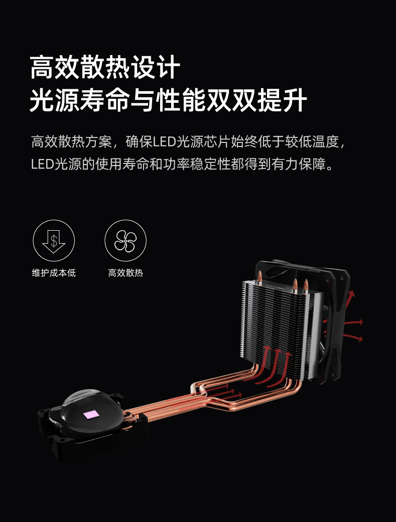 高效散熱方案,確保LED光源芯片始終低于較低溫度