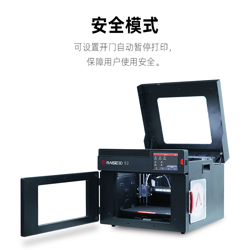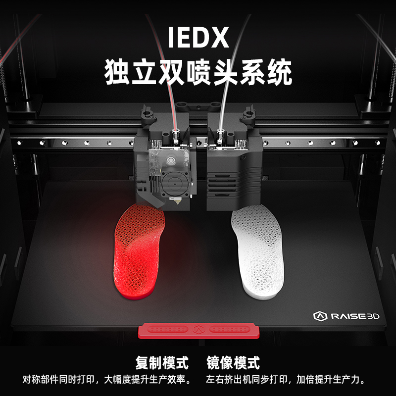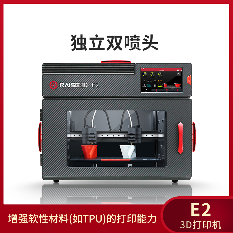 RAISE E2擁有IDEX單雙噴頭打印系統(tǒng),更高效率,更快速度,支持鏡像打印,復(fù)制打印,自動(dòng)平臺(tái)調(diào)整功能,遠(yuǎn)程無(wú)限遙控,內(nèi)置攝像頭隨時(shí)監(jiān)控打印效果,RAISE E2讓3d打印變得更加簡(jiǎn)單!RAISE E2全新一代3d打印機(jī),重新定義高品質(zhì)3d打印需求,為你展現(xiàn)前所未有的智能時(shí)刻,獨(dú)立雙噴頭,7寸觸摸屏,遠(yuǎn)程遙控?cái)z像頭,輔助偏移校準(zhǔn),隨時(shí)打印,隨時(shí)監(jiān)控,安全便捷。