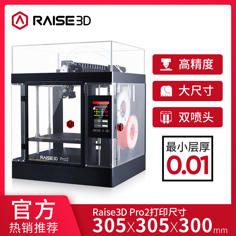 Raise Pro 2用于柔性制造的高性能3d打印機,24小時穩定運行,速度更快,質量更高,單雙噴頭,滿足你的高性能打印需求,電動雙噴頭擠出系統,免調試自動平臺,小身材,大智造!